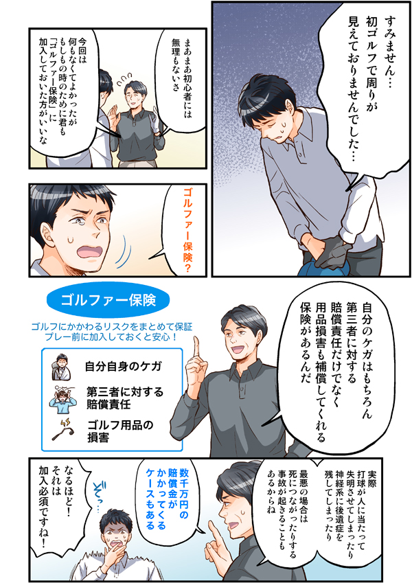 【漫画で分かる】ゴルファー保険の大切さ