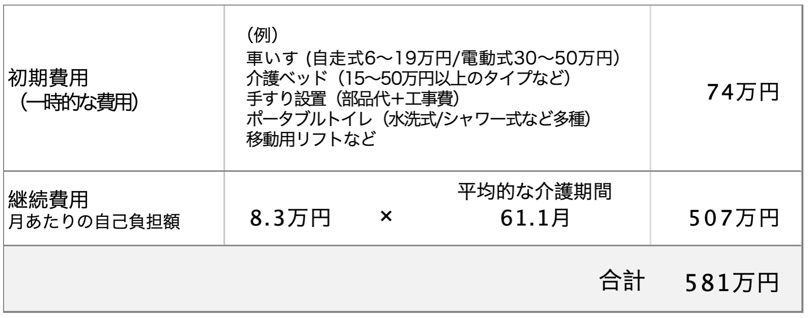 介護費用はどれくらいかかる? 1人あたり約580万円かかるとも